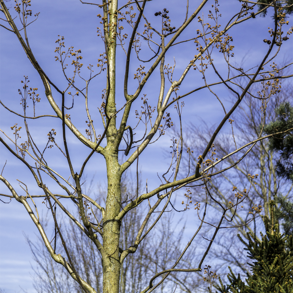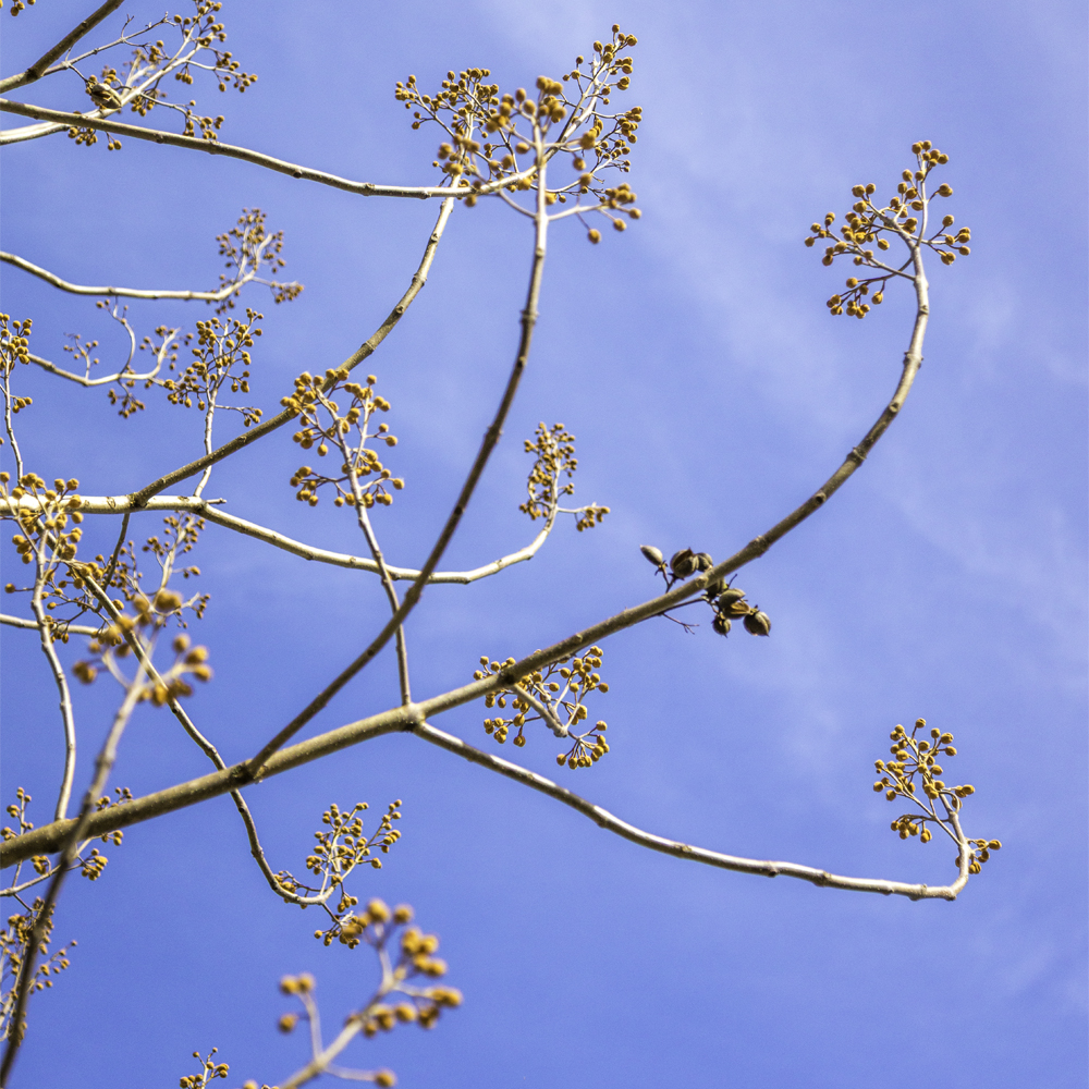 Der Blauglockenbaum ist zudem ein besonderer Blütenbaum, der im Frühjahr für viel Farbe im Garten sorgt. Er hat einen aufrechten Wuchs und entwickelt schnell eine breite, offene Krone. Die Äste wachsen kräftig und verleihen dem Baum eine robuste Ausstrahlung. Mit zunehmendem Alter bekommt der Baum immer mehr Charakter und kann sich zu einer markanten Erscheinung im Garten entwickeln. Dadurch eignet er sich besonders gut als Solitär.