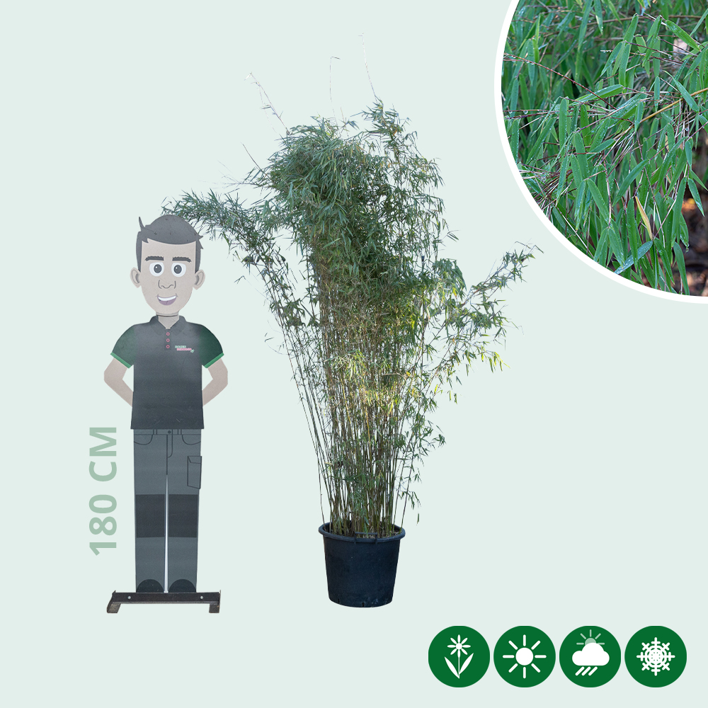 Der Bambus Fargesia Jiuzhaigou hat eine Gesamthöhe von 175 bis 200 Zentimetern.