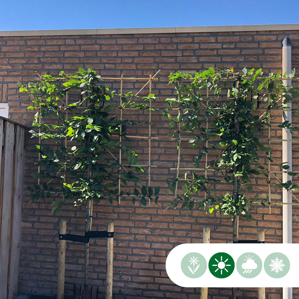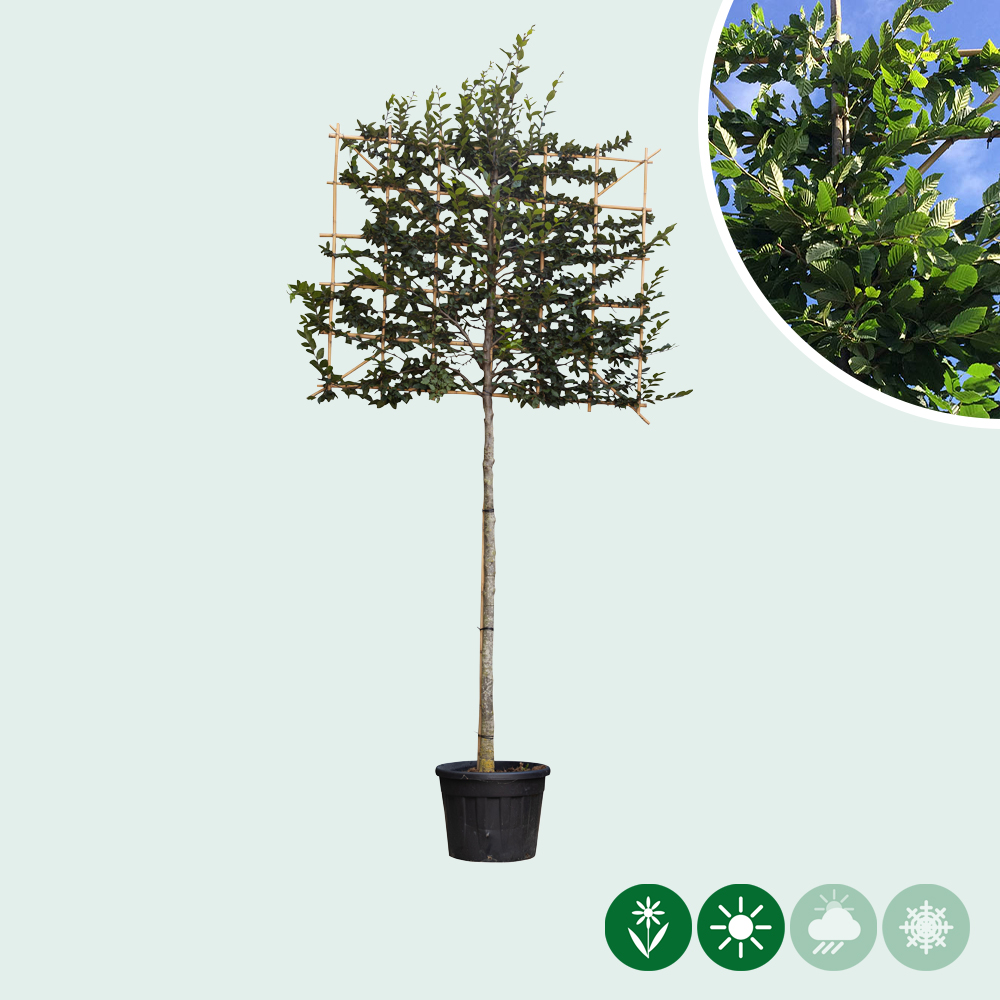 Auffallend an diesem Baum ist, dass er leuchtend grüne Knospen bildet, die im Frühjahr viel Aufmerksamkeit auf sich ziehen. Der Baum hat eine geschlossene Kronenstruktur und profitiert davon als Spalierbaum. Das Blatt ist eiförmig und doppelt gezähnt. Die Blätter bleiben im Winter lange am Baum, sodass die Schirmform dieses Baumes geschlossen bleibt und auch dann viel Privatsphäre bietet. Es ist ratsam, die Hainbuche jährlich gleichmäßiges zurückzuschneiden, damit sie ihre Form beibehält. Die Hainbuche kann in jeder Art von Garten gepflanzt werden.