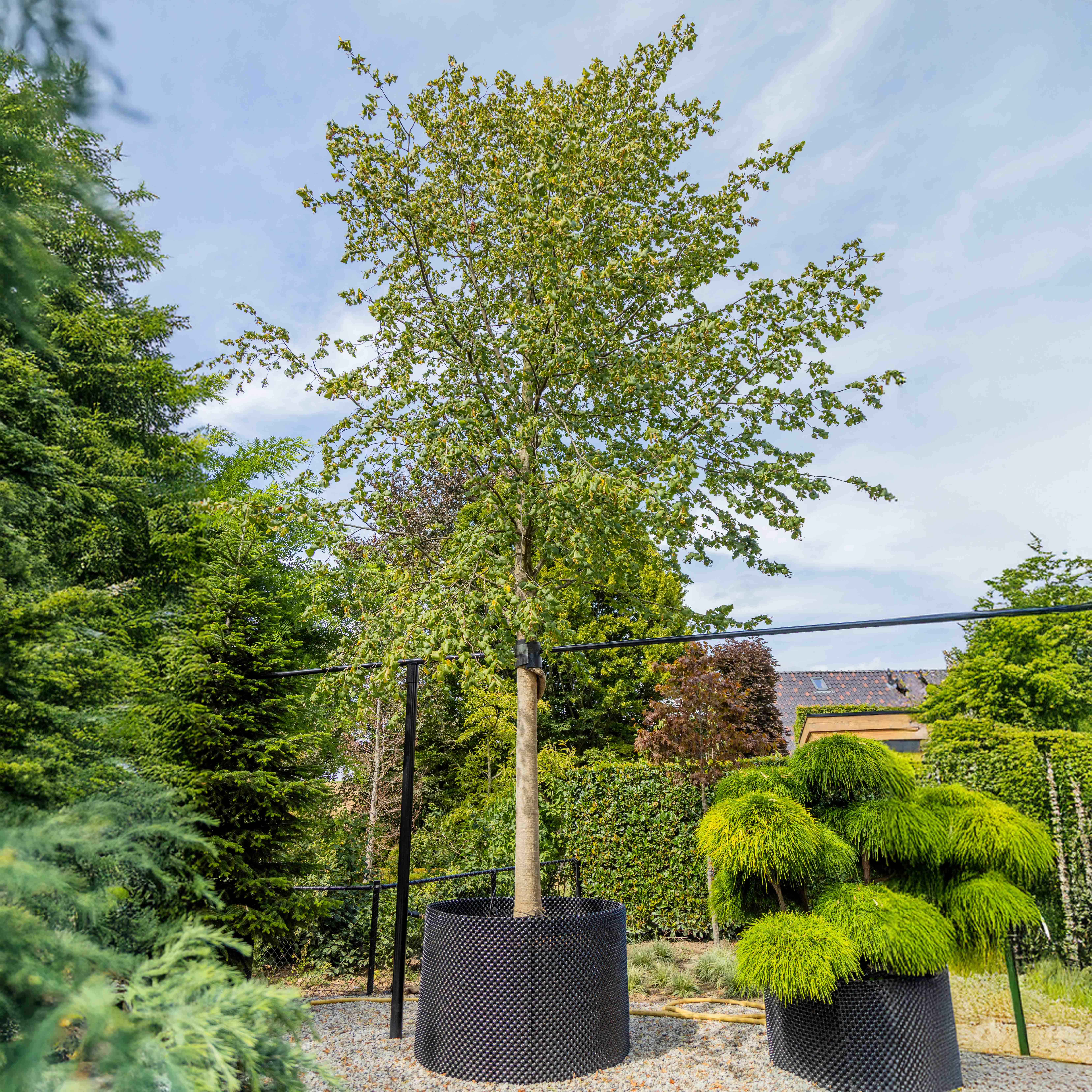 ACHTUNG: Dies ist ein exklusiver Baum. Der Baum, den du auf dem Foto siehst, ist genau der Baum, den du auch erhältst. Diese Bäume sind groß und schwer und werden mit Spezialtransport geliefert. Bitte beachte, dass sich die Lieferzeit dadurch etwas verlängern kann. Der Baum steht in einem großen, speziellen Topf über dem Boden. Dadurch kann er das ganze Jahr über geliefert werden und die Anwuchschancen sind noch höher.