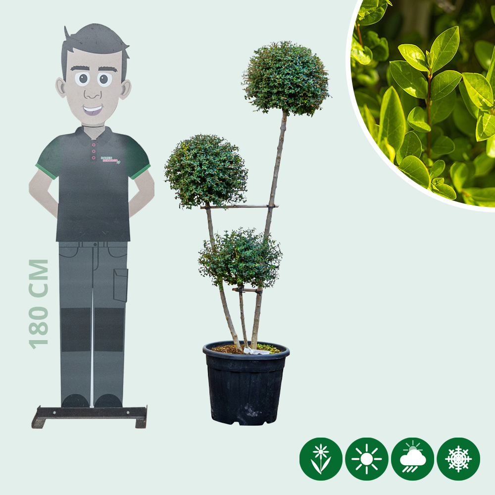 Der Kugel Liguster Pompom hat eine Gesamthöhe von 150 bis 175 Zentimetern.
