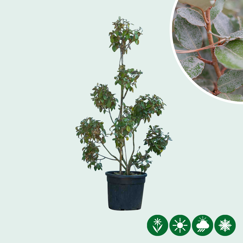 Die Ölweide Pompon fällt sofort durch ihre einzigartigen, runden Formen auf. Anstelle einer vollen Krone hat dieser Baum mehrere kompakte „Pompons“ an den Zweigen. Das sorgt für einen verspielten und zugleich klaren Look und macht den Baum zu einer besonderen Ergänzung für Ihren Garten.
