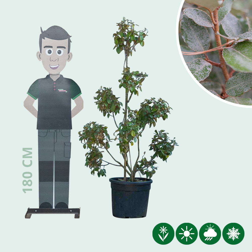 Die Ölweide Pompon hat eine Gesamthöhe von 150–175 cm.