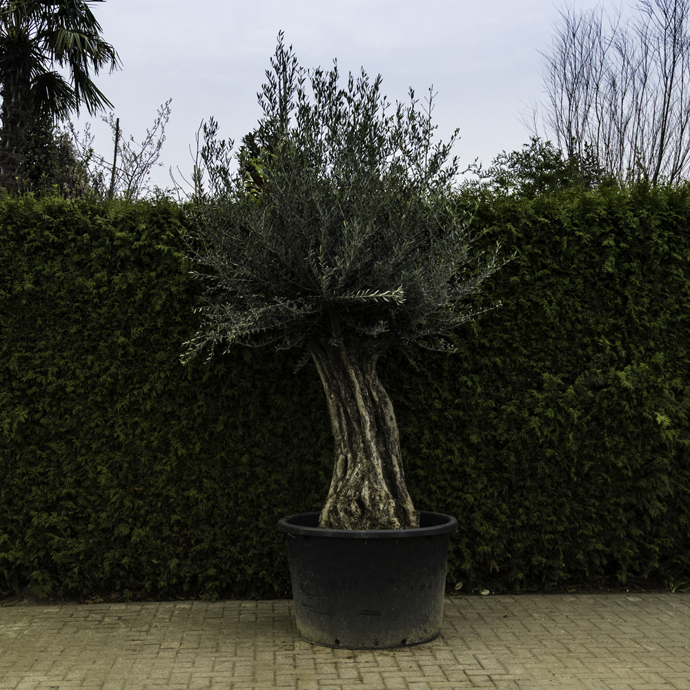 Die Olivenbäume kommen aus dem Mittelmeerraum und sind einer der ältesten Bäume der Welt. Die Blätter dieses mediterranen Baums sind unten grau und oben grün. Der Olivenbaum wechselt seine Blätter alle drei Jahre aus. Je älter dieser Baum ist, desto unberechenbarer ist sein Wachstum und die Formgebung. Die Unberechnbarkeit und die Formgebung geben einen schönen charakteristischen Effekt.