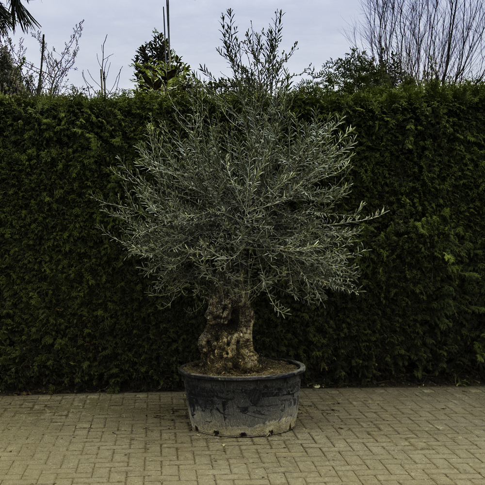 Die Olivenbäume kommen aus dem Mittelmeerraum und sind einer der ältesten Bäume der Welt. Die Blätter dieses mediterranen Baums sind unten grau und oben grün. Der Olivenbaum wechselt seine Blätter alle drei Jahre aus. Je älter dieser Baum ist, desto unberechenbarer ist sein Wachstum und die Formgebung. Die Unberechnbarkeit und die Formgebung geben einen schönen charakteristischen Effekt.