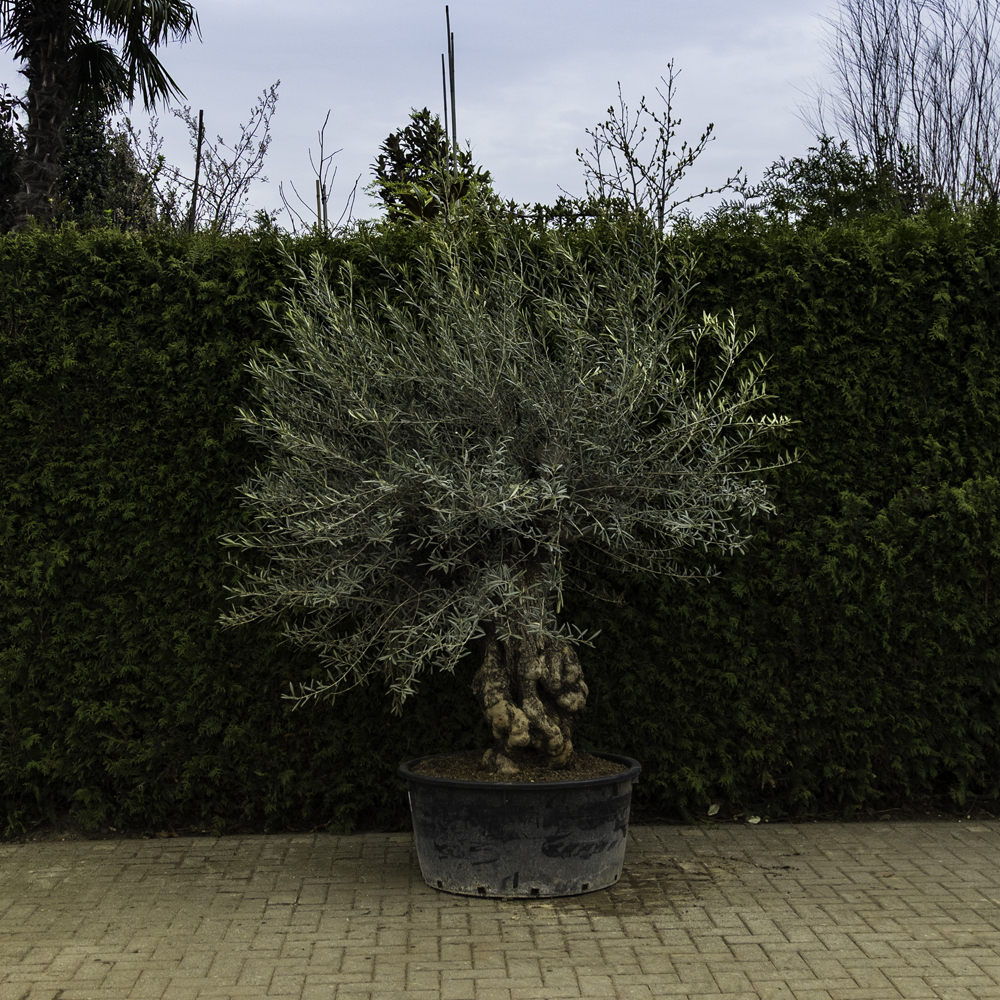 Die Olivenbäume kommen aus dem Mittelmeerraum und sind einer der ältesten Bäume der Welt. Die Blätter dieses mediterranen Baums sind unten grau und oben grün. Der Olivenbaum wechselt seine Blätter alle drei Jahre aus. Je älter dieser Baum ist, desto unberechenbarer ist sein Wachstum und die Formgebung. Die Unberechnbarkeit und die Formgebung geben einen schönen charakteristischen Effekt.