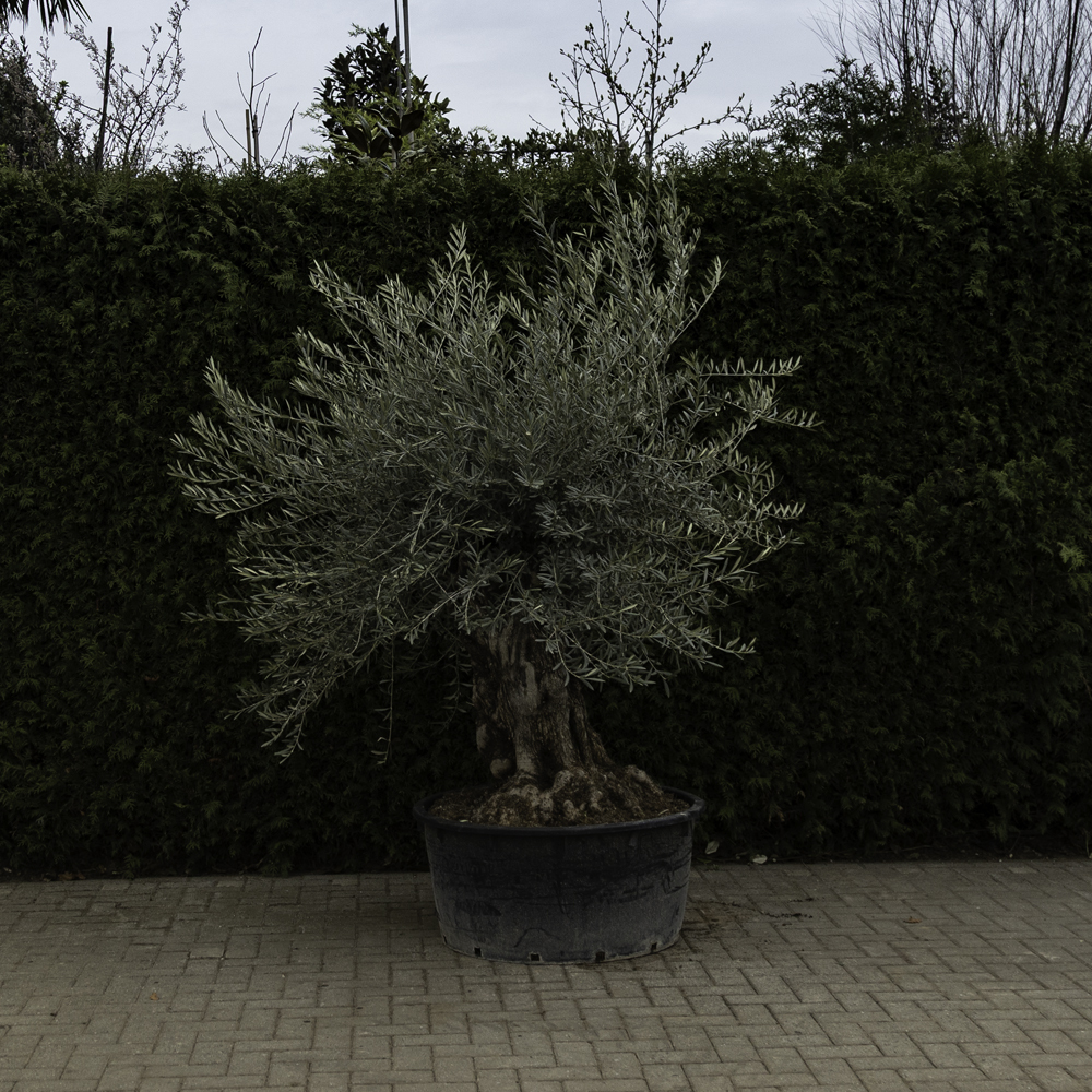 Die Olivenbäume kommen aus dem Mittelmeerraum und sind einer der ältesten Bäume der Welt. Die Blätter dieses mediterranen Baums sind unten grau und oben grün. Der Olivenbaum wechselt seine Blätter alle drei Jahre aus. Je älter dieser Baum ist, desto unberechenbarer ist sein Wachstum und die Formgebung. Die Unberechnbarkeit und die Formgebung geben einen schönen charakteristischen Effekt.