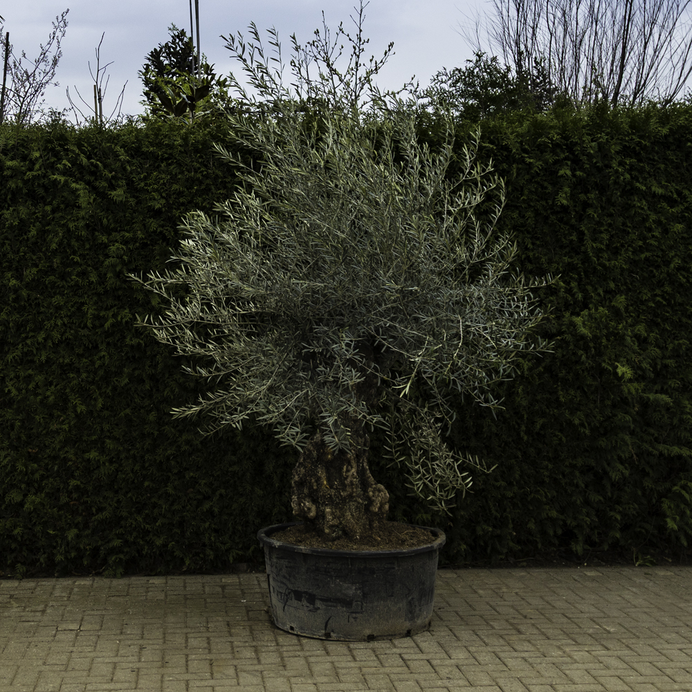 Die Olivenbäume kommen aus dem Mittelmeerraum und sind einer der ältesten Bäume der Welt. Die Blätter dieses mediterranen Baums sind unten grau und oben grün. Der Olivenbaum wechselt seine Blätter alle drei Jahre aus. Je älter dieser Baum ist, desto unberechenbarer ist sein Wachstum und die Formgebung. Die Unberechnbarkeit und die Formgebung geben einen schönen charakteristischen Effekt.