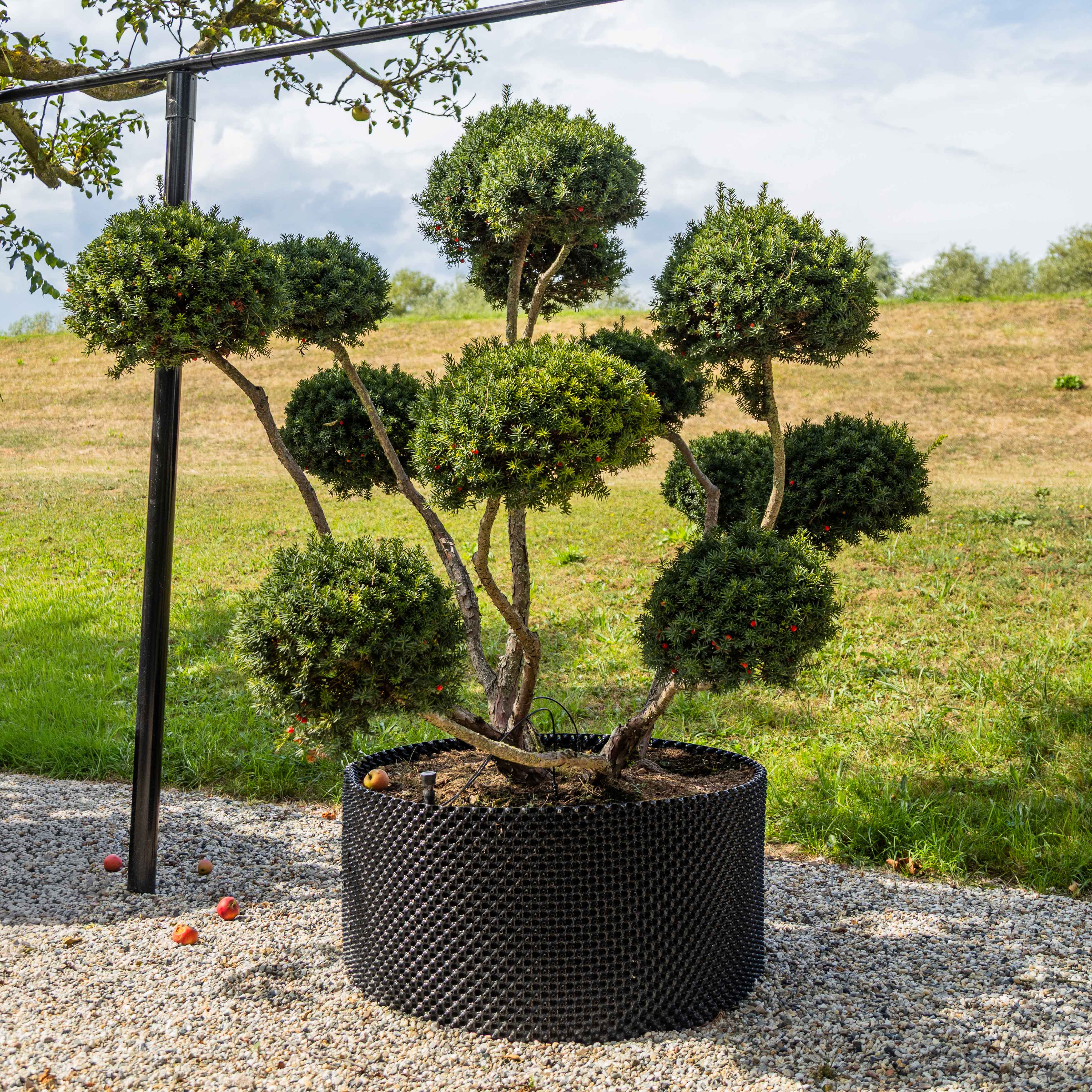 Der Taxus Bonsai ist eine kompakte und stilvolle Form der Taxus baccata. Dieser immergrüne Nadelbaum ist bekannt für sein ruhiges und elegantes Erscheinungsbild. Die feinen, dunkelgrünen Nadeln stehen dicht beieinander und bilden eine dichte Krone, die das ganze Jahr über ansprechend bleibt. Durch die Gestaltung als Bonsai erhält die Pflanze eine charakteristische und fast skulpturale Ausstrahlung, die sowohl in moderne als auch klassische Gärten hervorragend passt.
